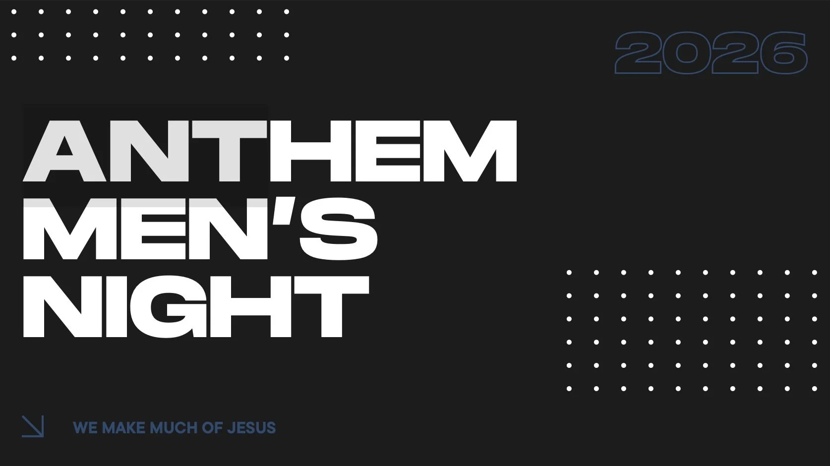 Join us for the FIRST-EVER Anthem Men’s Night on Friday, March 6. Expect games, insane amounts of food, making much of Jesus with Anthem Worship, and a powerful message from Jimmy Shaw. Bring a friend, bring your appetite, and expect to meet with God. Register HERE.